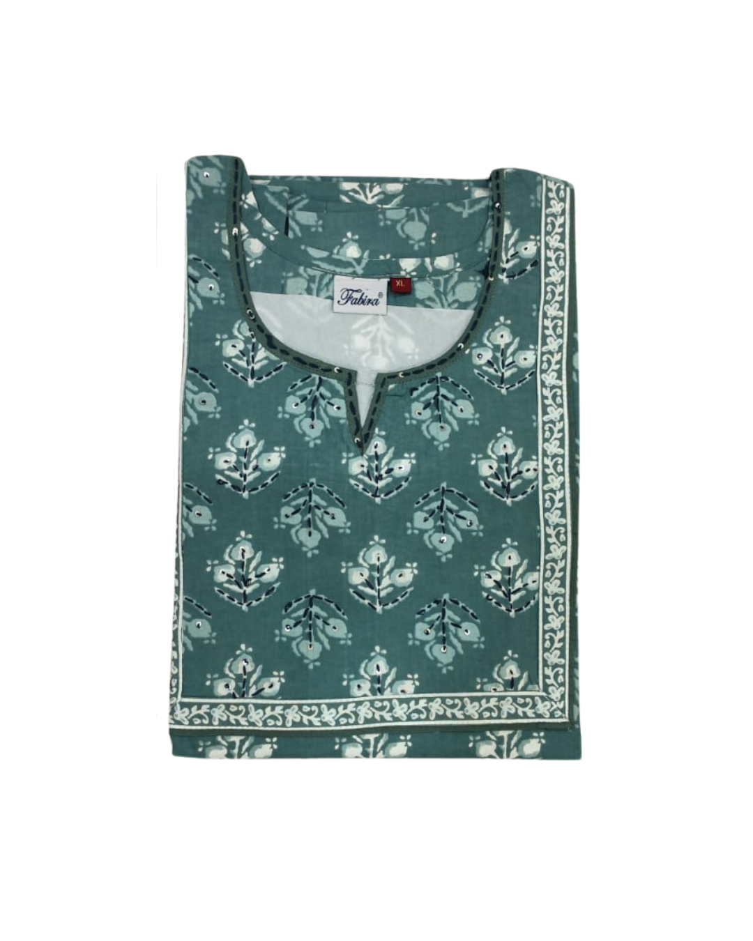 Sleeves & finishing: Sleeves continue the same white floral Buti as the body with no separate border, keeping the look light and uniform. Seams are simple; the framed yoke is the main highlight.
